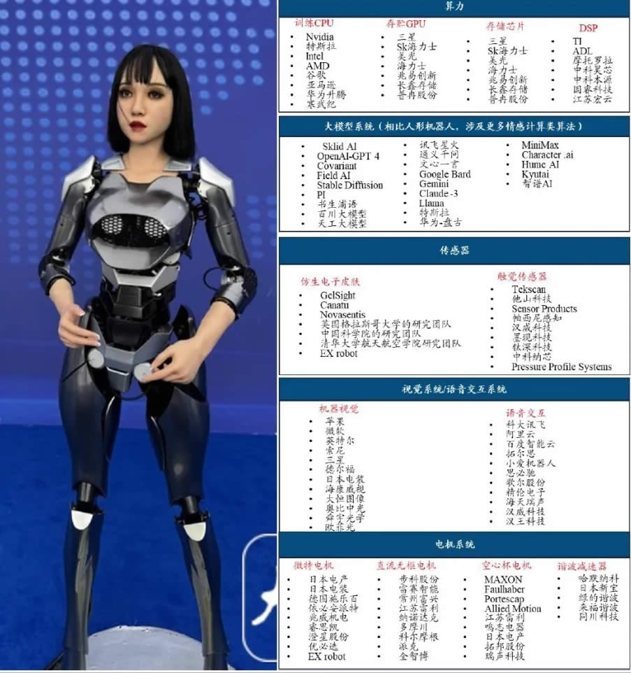 外觀設(shè)計(jì):3D打印骨骼與硅膠仿真皮技術(shù)使機(jī)器人外表和觸感都接近 真人;柔性關(guān)節(jié)技術(shù),滿足人形機(jī)器人小型化、參數(shù)可定制、大扭矩等特殊 需求,提升了機(jī)器人動(dòng)作的柔順度。