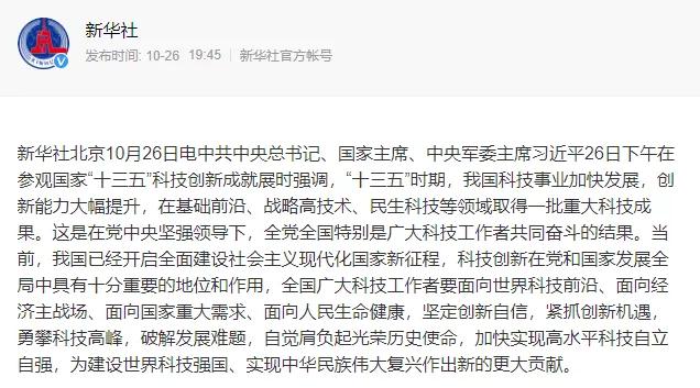 10月26日,總書(shū)記在參觀國(guó)家“十三五”科技創(chuàng)新成就展時(shí)強(qiáng)調(diào),“十三五”時(shí)期,我國(guó)科技事業(yè)加快發(fā)展,創(chuàng)新能力大幅提升,在基礎(chǔ)前沿、戰(zhàn)略G技術(shù)、民生科技等L域取得一批重大科技成果。這是在黨堅(jiān)強(qiáng)L導(dǎo)下,全黨全國(guó)特別是廣大科技工作者共同奮斗的結(jié)果。當(dāng)前,我國(guó)已經(jīng)開(kāi)啟多面建設(shè)社會(huì)主義現(xiàn)代化國(guó)家新征程,科技創(chuàng)新在黨和國(guó)家發(fā)展全局中具有十分重要的地位和作用,全國(guó)廣大科技工作者要面向世界科技前沿、面向經(jīng)濟(jì)主戰(zhàn)場(chǎng)、面向國(guó)家重大需求、面向人民生命健康,堅(jiān)定創(chuàng)新自信,緊抓創(chuàng)新機(jī)遇,勇攀科技G峰,破解發(fā)展難題,自覺(jué)肩負(fù)起光榮歷史使命,加快實(shí)現(xiàn)G水平科技自立自強(qiáng),為建設(shè)世界科技強(qiáng)國(guó)、實(shí)現(xiàn)中華民族偉大復(fù)興作出新的更大貢獻(xiàn)。