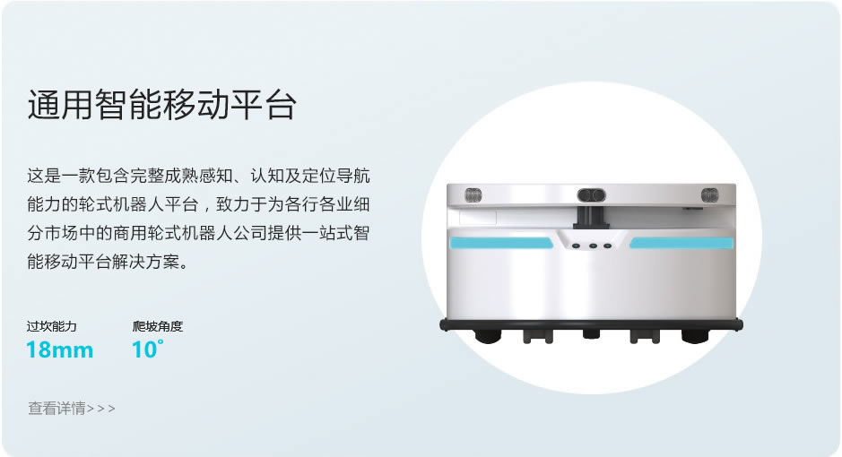 移動(dòng)機(jī)器人底盤續(xù)航10個(gè)小時(shí)以上,一次建圖超過幾萬平方,融合多個(gè)視覺傳感器對(duì)行走環(huán)境進(jìn)行立體建模,滿足多種場景下使用有5大優(yōu)勢