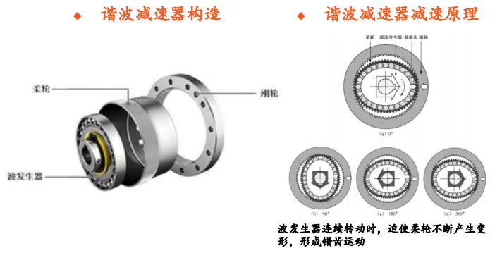 諧波減速器是一種靠波發(fā)生器使柔輪產(chǎn)生可控的彈性變形波,通過其與剛輪的相互作用,實現(xiàn)運(yùn)動和動力傳遞的傳動裝