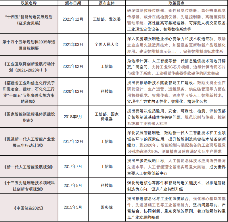 業(yè)的發(fā)展,同時(shí)機(jī)器視覺技術(shù)也被納入“十四五”智能制造規(guī)劃中的關(guān)鍵產(chǎn)業(yè)。